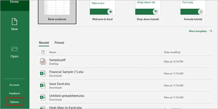 - Từ thanh bên trái, chọn Options (Tùy chọn).