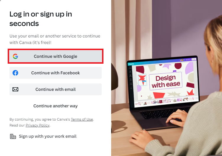 1. Đăng nhập / Đăng ký sử dụng Canva