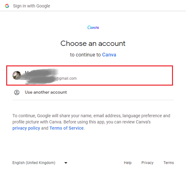 Một cửa sổ xuất hiện, chúng ta lựa chọn tài khoản Google như hình sau để đăng ký/đăng nhập: