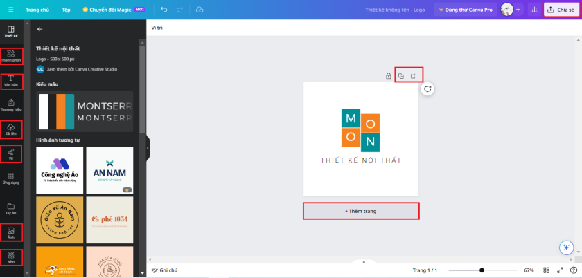 - Thêm trang / Tạo bản sao: Tạo thêm trang cho mẫu thiết kế, ví dụ như thiết kế bài thuyết trình…