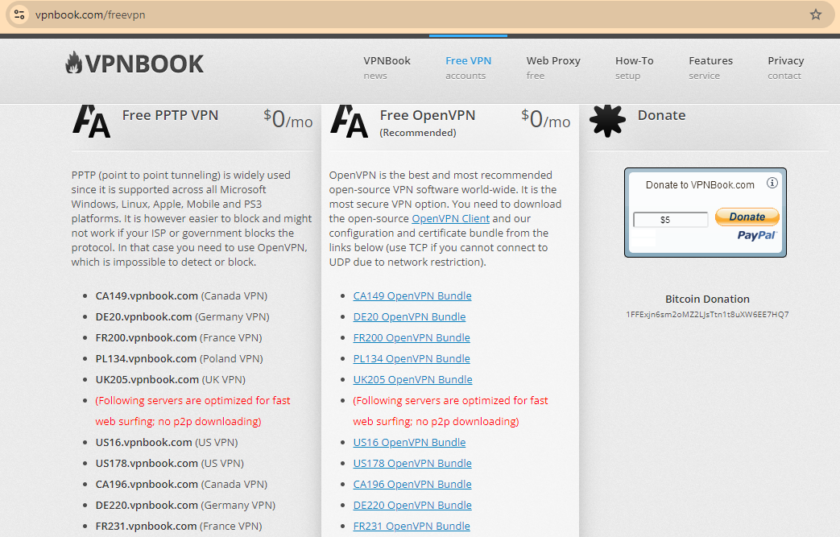 - Trên trang chủ, bạn sẽ thấy các lựa chọn VPN miễn phí. VPNBook cung cấp thông tin server và tài khoản VPN mà bạn có thể sử dụng để kết nối.
