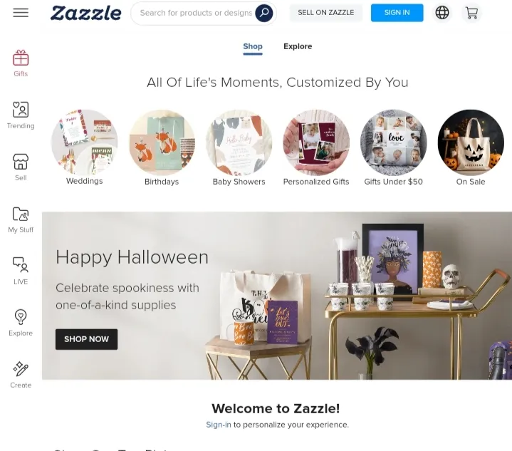 Zazzle khá giống Etsy, Teachers Pay Teachers và Creative Market. Nền tảng này có hơn 14,1 triệu người truy cập mỗi tháng để mua sắm.