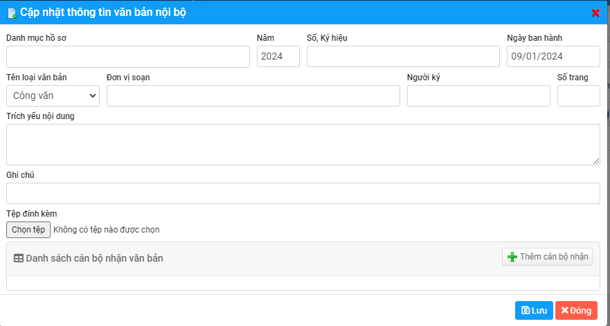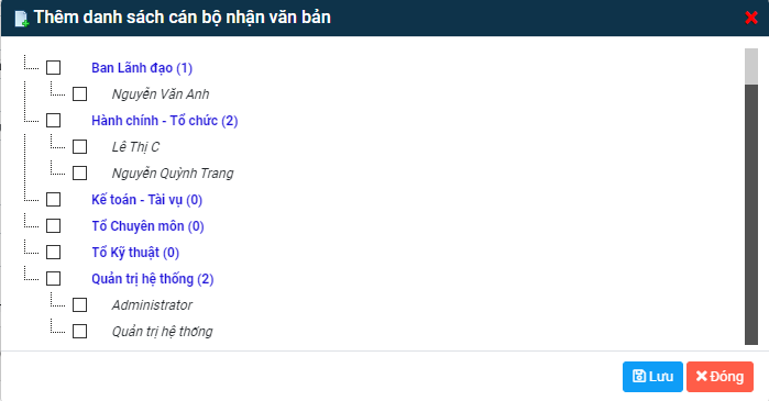 Thêm cán bộ nhận văn bản nội bộ