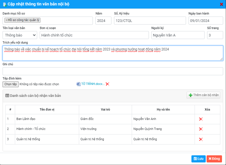 Quản lý văn bản nội bộ