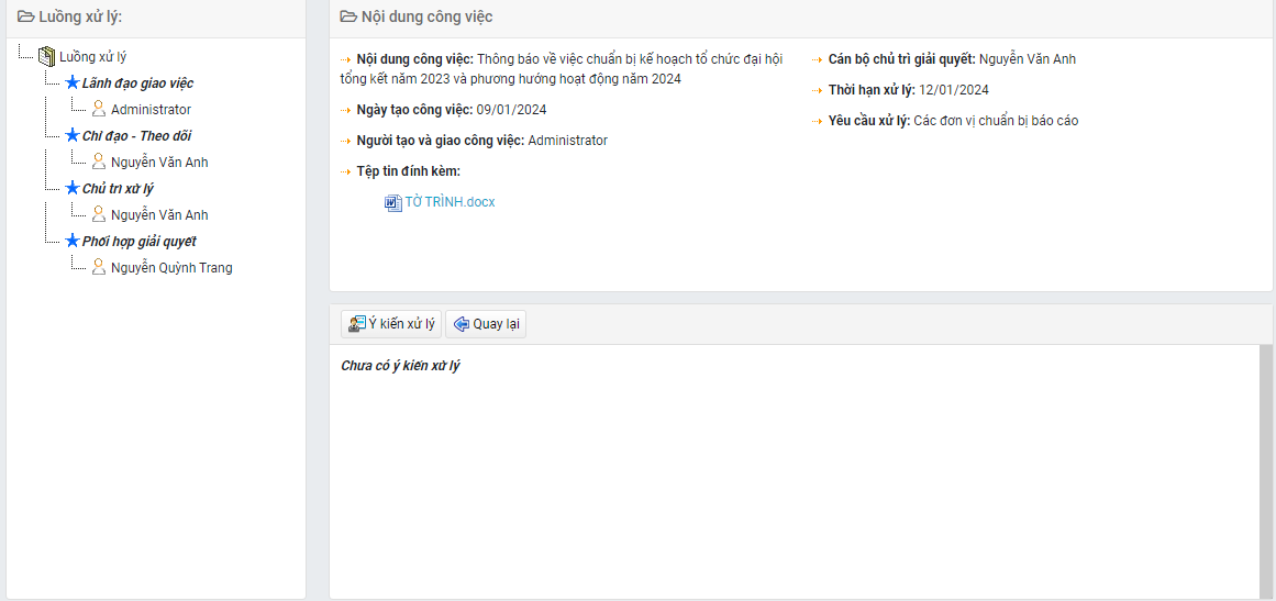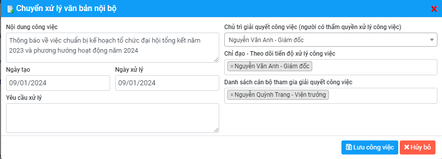 Chức năng xử lý, giải quyết văn bản nội bộ