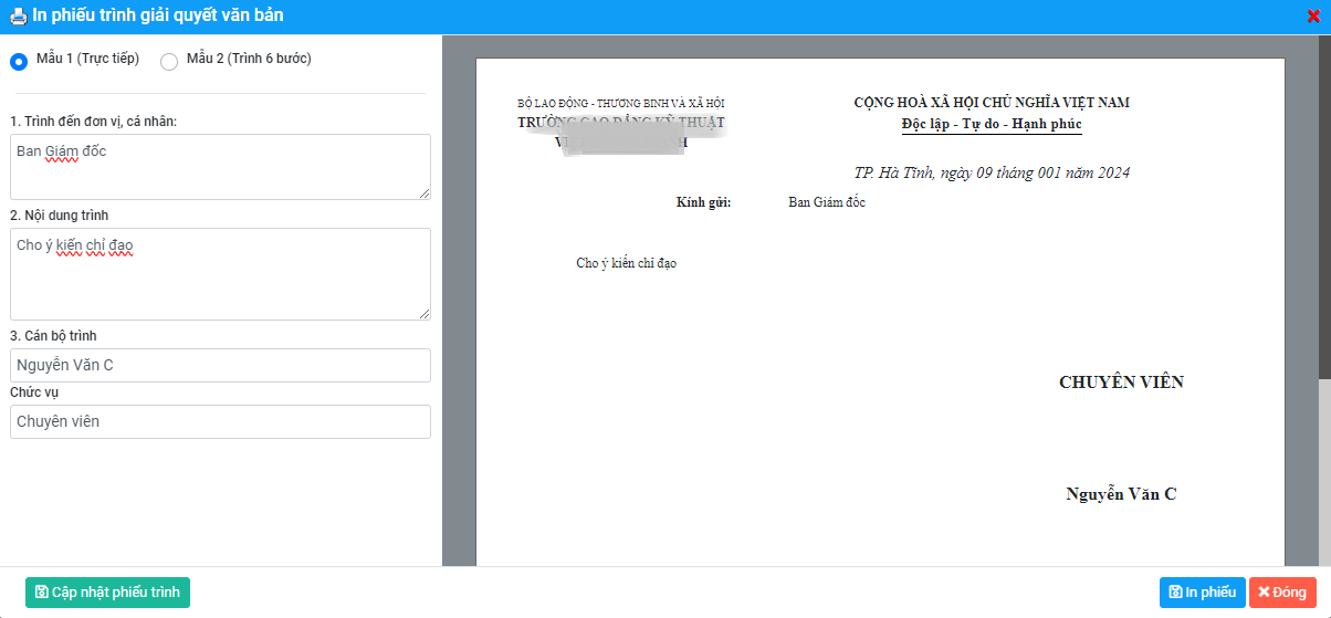 6. Phiếu trình xử lý